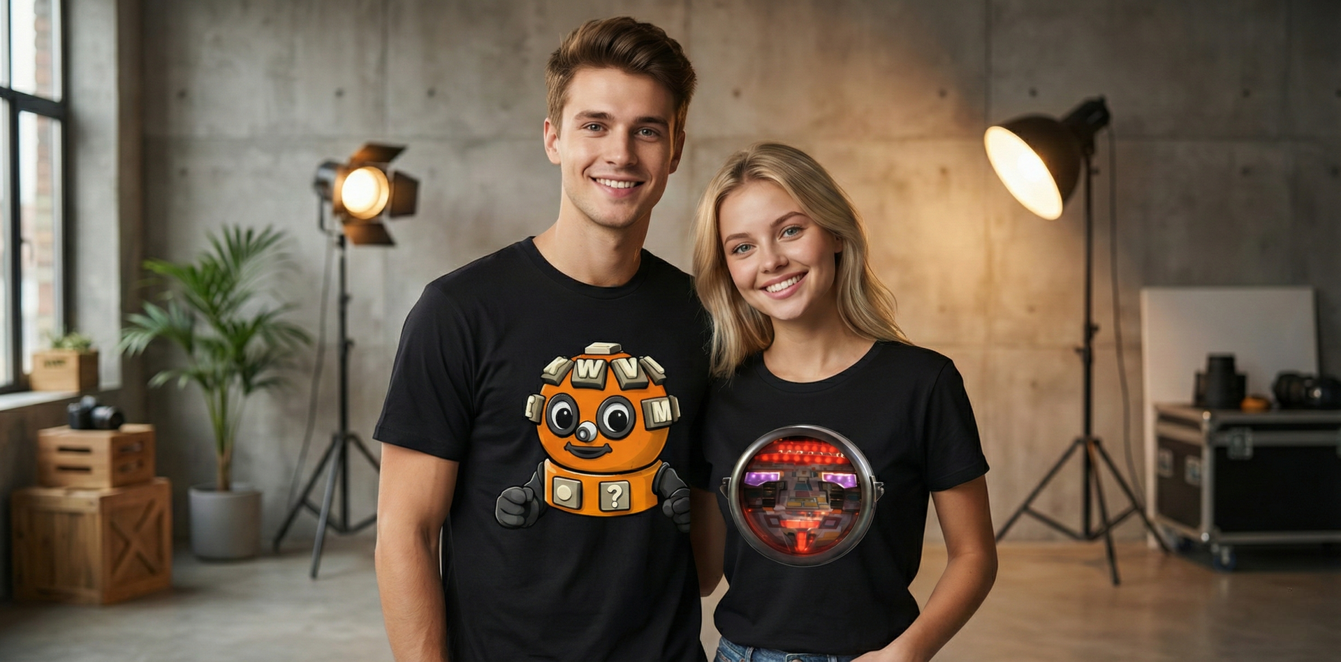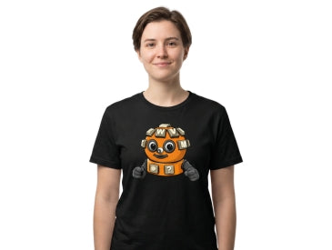 Cute Robot Mascot T-Shirt — Orange Puzzle Bot Graphic Tee -
