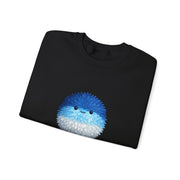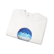 Blue and White Pompom Crewneck Sweatshirt — Cute Pompom "Fluffy" Design