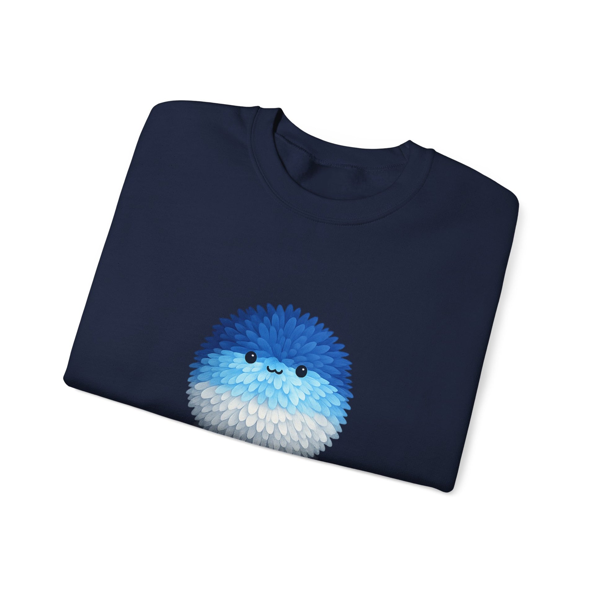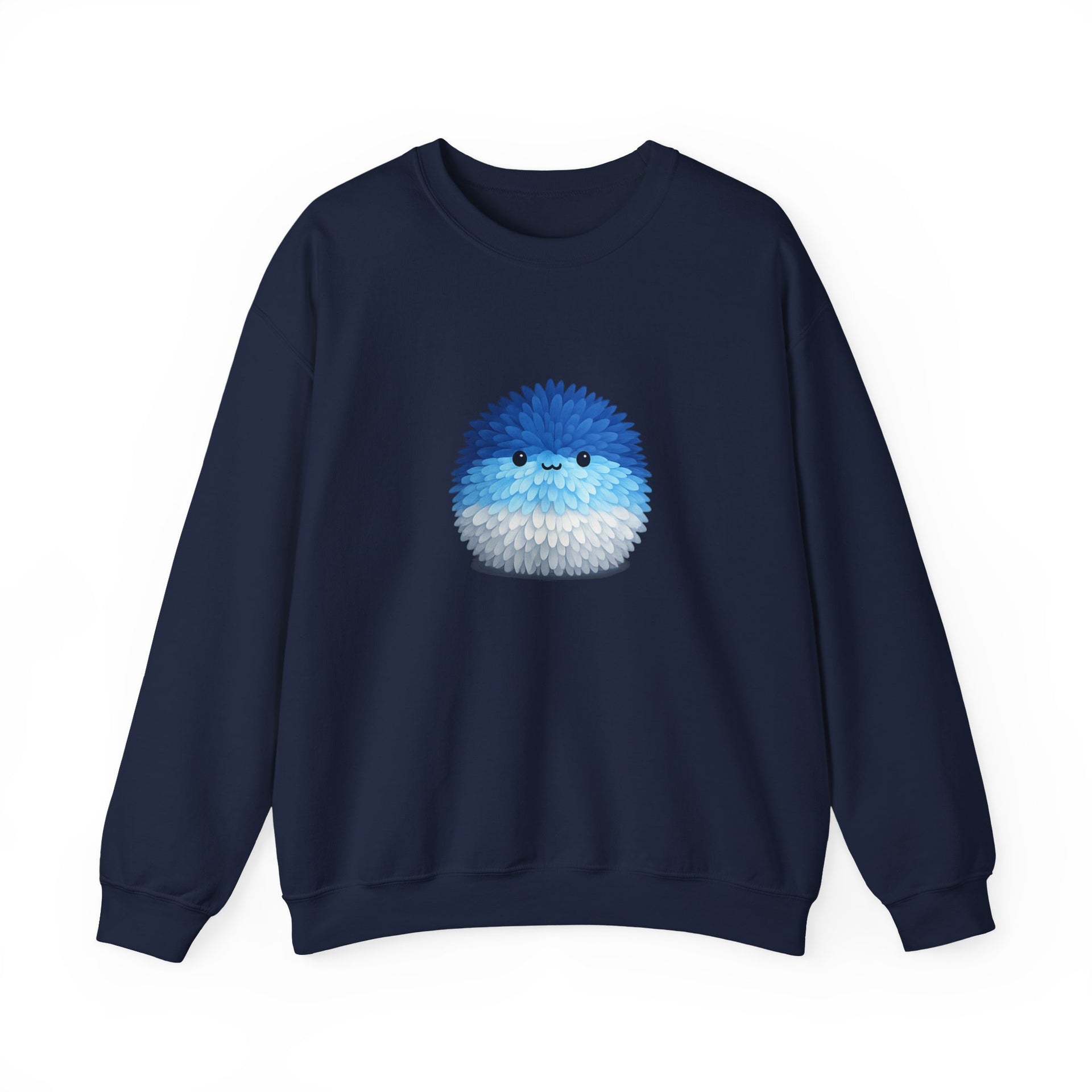 Soft, roomy, and quietly joyful — this crewneck wraps you in comfort and a little bit of whimsy. The plush 50/50 cotton-poly blend feels warm without weight, while the tubular knit and ribbed collar keep the silhouette clean and relaxed. A small, fluffy blue pom pom sits on the chest, its gentle expression bringing a calm, playful note to cozy mornings, couch reading, or slow walks to a coffee shop. The subtle embroidered option and neat tear-away label make wearing effortless; the sweatshirt slips into everyday life as something comforting you reach for when you want to feel cared for and a little amused.